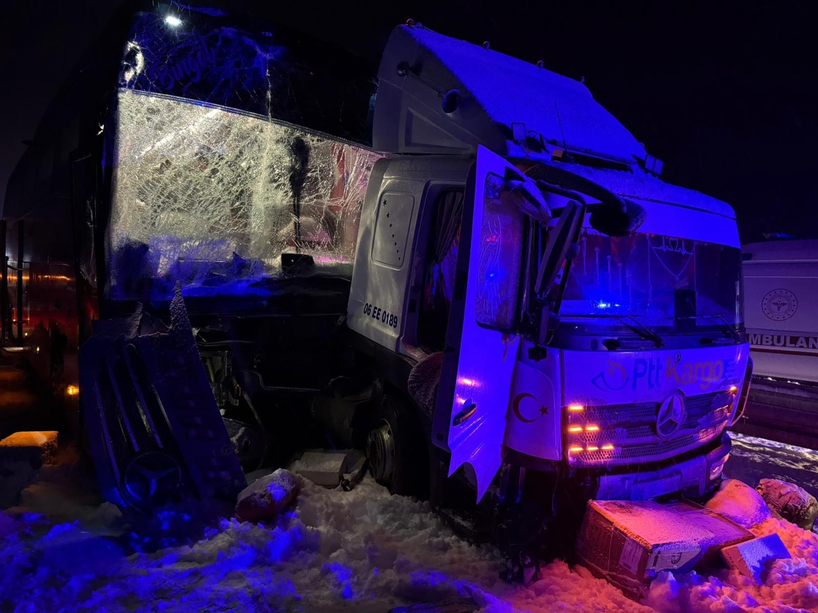 Edinilen bilgilere göre, Emre Can Aras yönetimindeki kargo kamyonu kontrolden çıkarak kaza yaptı. Bu sırada Hatay’dan Ardahan’a seyir halinde olan ve Mehmet Zülküf Çağlayan’ın kullandığı yolcu otobüsü, kargo kamyonuna çarptı.