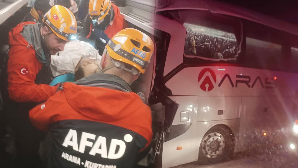 Kazada şoför ve otobüste bulunan 13 kişi yaralanırken, ihbar üzerine bölgeye çok sayıda sağlık, jandarma, polis, itfaiye ve AFAD ekibi sevk edildi.