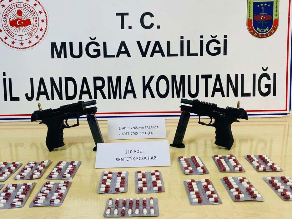 24 Kasım saat 14.30 sıralarında Marmaris İlçe Jandarma Komutanlığı ekiplerince Çetibeli Yol Kontrol Noktasında 32 AB… plakalı yolcu otobüsünde uyuşturucu ve silah ele geçirildi, S.K. gözaltına alındı.
