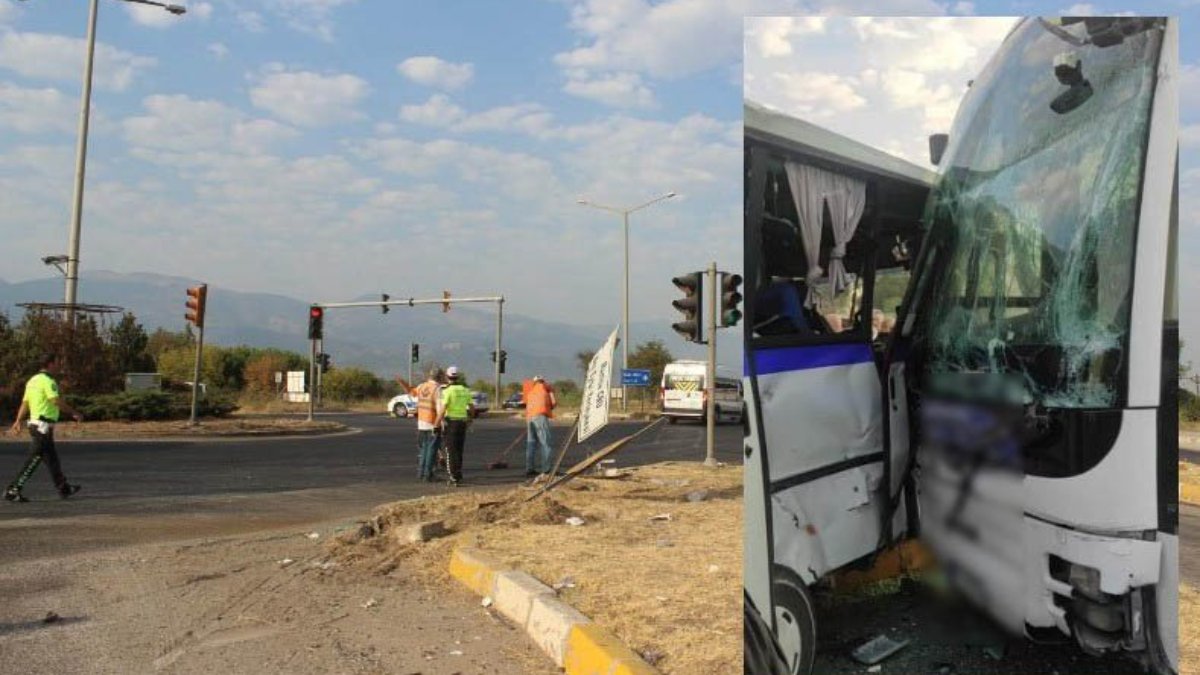 Manisa'nın Salihli ilçesinde yolcu otobüsü ile işçi servis midibüsünün çarpıştığı kazada, 11 kişi yaralandı.