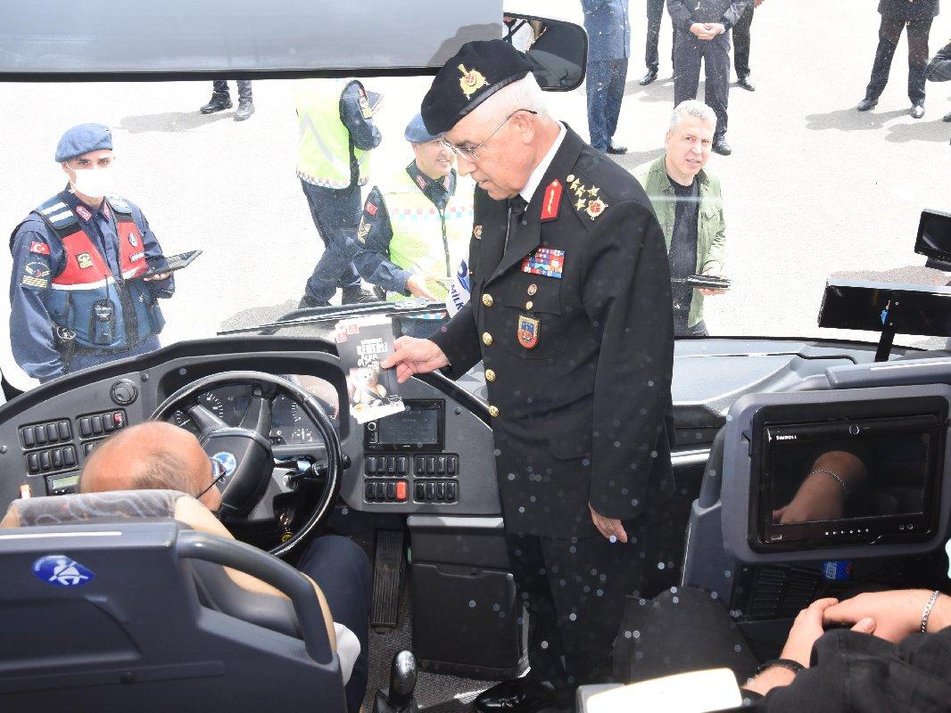 Trafik noktasına gelen yolcu otobüsüne de binen Orgeneral Çetin, sürücü ve yolcuların bayramını kutladı. Ramazan Bayramında alınan trafik tedbirlerine ilişkin değerlendirmede bulunan Çetin, "Bayramda kazasız, belasız, vukuatsız bir bayram geçirmek için sürücülerimizi, yolcularımızı, trafik kuralları yönünden bilinçlendirmek, uyarmak, trafik güvenliğini sağlamak için yaklaşık 208 bin kişi yollardayız" diye konuştu.