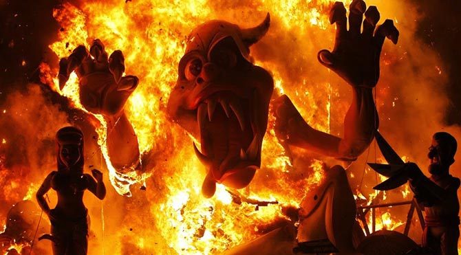 Marangoz ustaları ve sanatçıların 1 yıllık çalışmasının ürünü 770 farklı figürdeki büyük kuklalar, kentin dört bir yanında sergilendikten sonra yakılmak üzere kent merkezinde toplandı. Her yıl farklı temaları işleyen 'Las Fallas'ın tahtadan yapılmış kuklalarında bu yıl, siyasetçiler ve ülkede son dönemlerde gündemde ilk sırayı alan yolsuzluklara adı karışan kişilikler öne çıkartıldı.