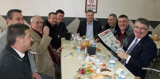 Şahin, "Benim için yolunu şaşırmış başkan diyorlar" diyen Belediye Başkanı Koç'a, "Yolunu şaşıran başkanın misafiri de 'yolunu şaşırmış bakan' olur" diyerek espriye karşılık verdi.İçişleri Bakanlığı koltuğunu geçen ay Muammer Güler'e devreden İdris Naim Şahin, İzmir yönünden Bursa'ya gelirken Karacabey İlçesi'nde öğle yemeği için mola verdi. Şahin, AKP'den bir süre önce istifa eden bağımsız Belediye Başkanı Ergün Koç ile bir restorantta kelle paça çorbası içti, Mustafakemalpaşa tatlısı yedi.