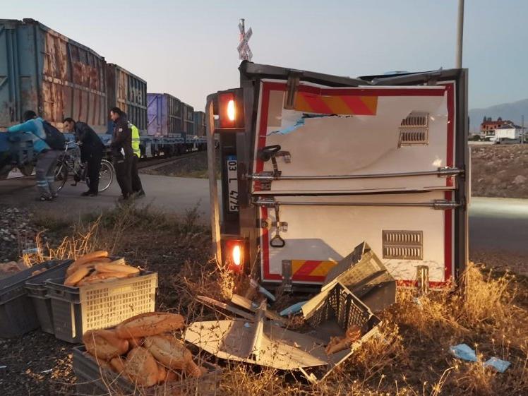 Denizli'den Afyonkarahisar'a yük taşıyan makinist Yasin Ayatan yönetimindeki tren hemzemin geçitten geçmekte olan Ahmet Başpınar yönetimindeki ekmek servisi yapan kamyonete çarptı.