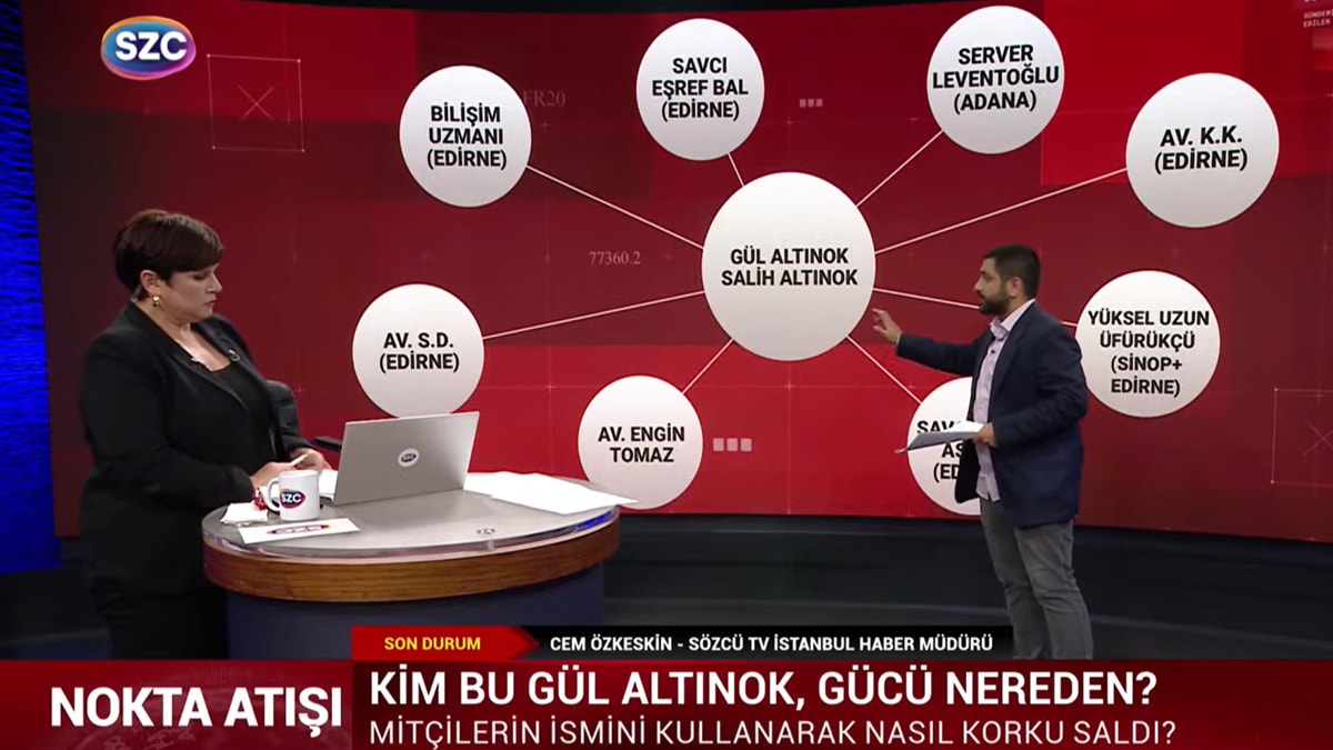 Yüksek yargıdaki yasak aşk skandalının perde arkasında neler var? Yargıda oluşan rüşvet çarkına sadece FETÖ borsası mı dahil? Hakime Gül Altınok kimlerin dosyası için rüşvet teklifinde bulundu? Altınok'la hukuki mücadele verenlerin başına neler geldi? Gül Altınok devlet içerisinden kimlerin ismini kullanarak ayrıcalık elde etti? İpek Özbey, Nokta Atışı'nda sordu; SÖZCÜ Televizyonu İstanbul Haber Müdürü Cem Özkeskin anlattı…