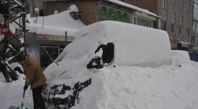 HAKKARİ’nin Yüksekova İlçesi'nde etkili olan kar yağışı nedeniyle kar kalınlığı ilçe merkezinde 1 metreye yaklaşırken araçlar kar altında kaldı.