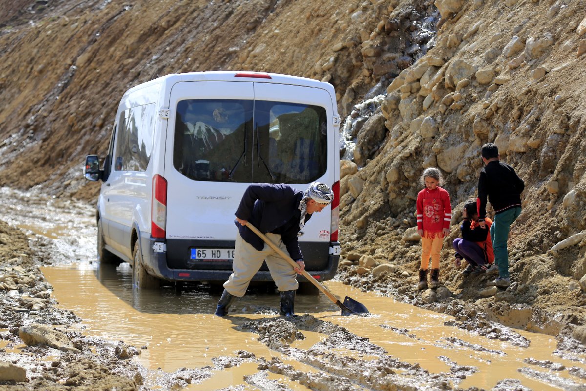 Yüksekova´ya yaklaşık 25 kilometre uzaklıktaki Onbaşılar köyüne bağlı Ağılcık ve Çobanpınar mezralarına giden yolun yapımı, çetin geçen kış şartları nedeniyle yarım kaldı. Havaların ısınması ve yağmurların etkisiyle, yüksek yerlerdeki karlar eridi, akan sular nedeniyle yol çamur deryasına dönüştü.
