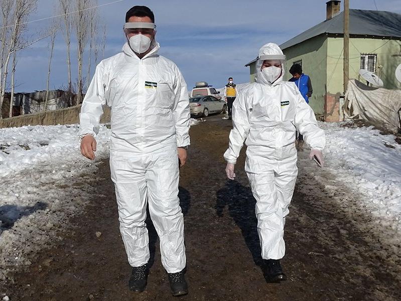 Yüksekova ilçesinde Covid-19 ile mücadele kapsamında aşı çalışması yürüten sağlık ekipleri, kar kış demeden vatandaşlara köylere gidiyor. İlçeye 40 kilometre uzaklıkta bulunan Esendere beldesine bağlı Güvenli köyüne giden ekipler, Tahir (92) ve kardeşi Sait Fırtına'ya (88) korona aşısı yaptı. Fırtına kardeşler, kar ve soğuk demeden çalışmalarını yürüten ekiplere teşekkür etti.