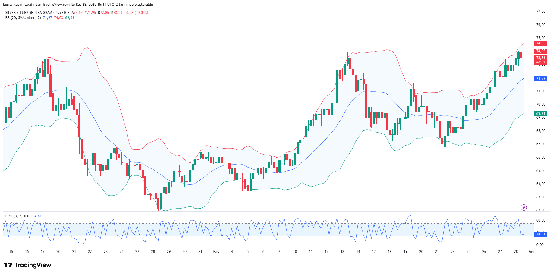Yaşanan gelişmelerin etkisiyle, gümüş fiyatları yeni günde yönünü yukarı çevirdi. Ons gümüşte görülen yukarı yönlü seyir ve dolar/TL kurundaki sınırlı yükselişin etkisiyle, gram gümüş 74,63 seviyesine yükselerek rekor tazeledi. Gram gümüş saat 16.07'de 73,51 dolar seviyesinde bulunuyor.