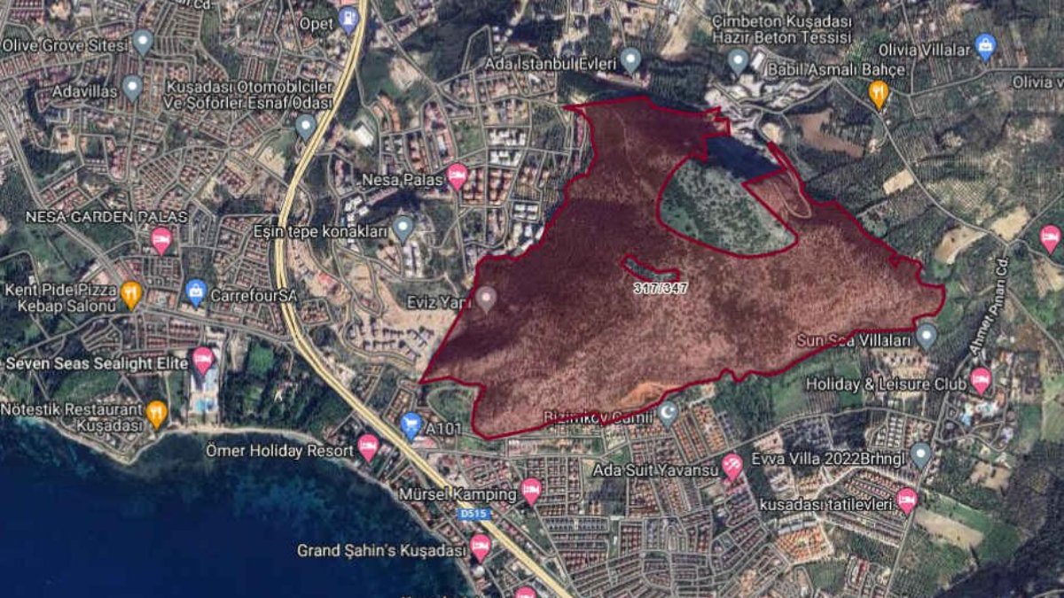 Kuşadası’nda mülkiyeti TOKİ’ye ait 15 parselden oluşan ve bir bütün halindeki satışa çıkarılan Yunan adaları manzaralı 266 bin 500 metrekarelik arazi 1 milyar 820 milyona Kuşadalı Eviz Yapı'nın oldu.