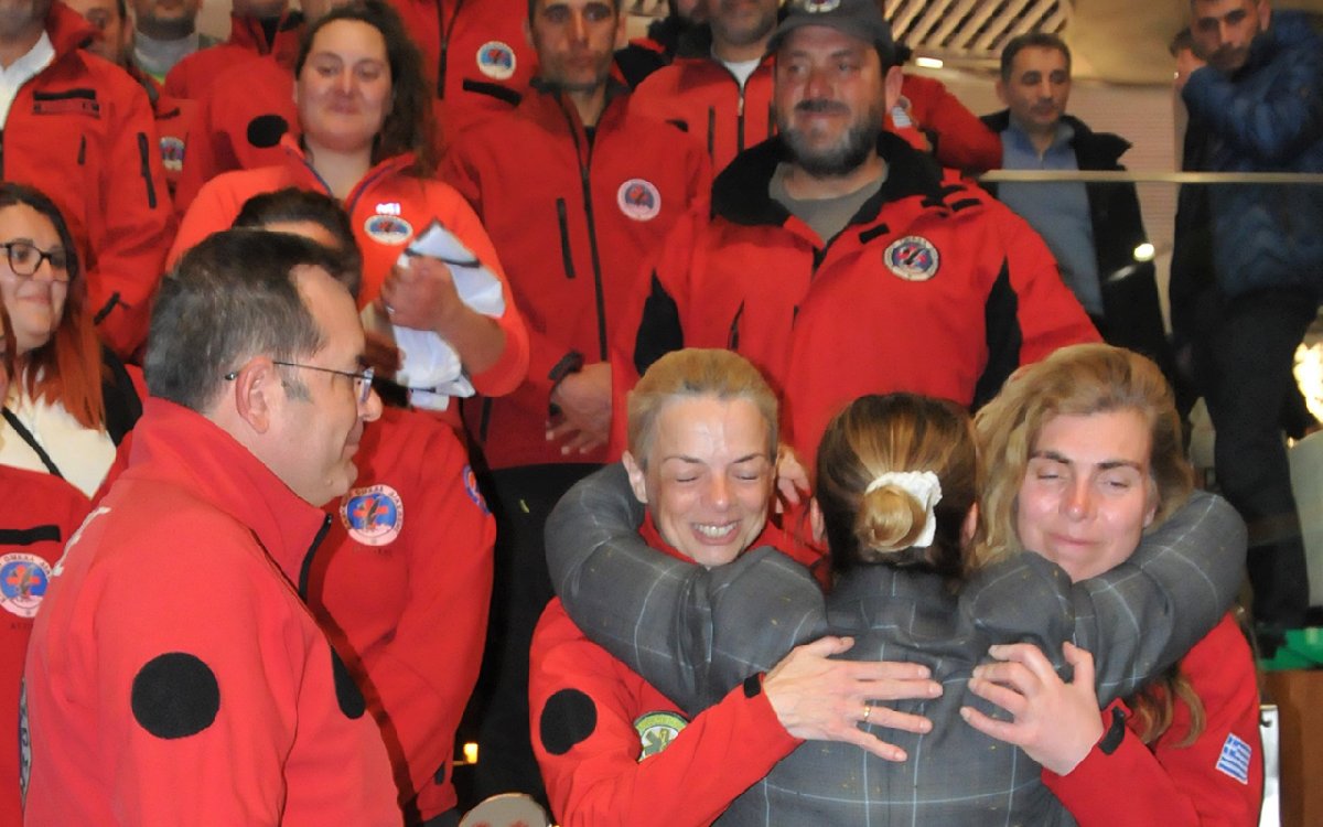 Gevrek'in bu sırada kurtarma ekibindeki kadın üyelere sarılması sırasında duygusal anlar yaşandı. Grup Türk ve Yunan bayrakları açarak toplu fotoğraf çektirdi.