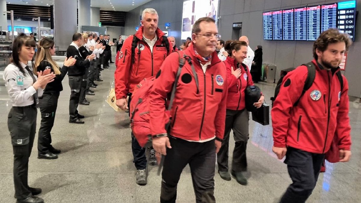 İstanbul Havalimanı'nda bilet ve bagaj işlemlerini yapan Yunan Kurtarma ekibi, pasaporttan geçişlerinin ardından karşılıklı dizilen İGA güvenlik görevlileri tarafından dakikalarca alkışlandı.