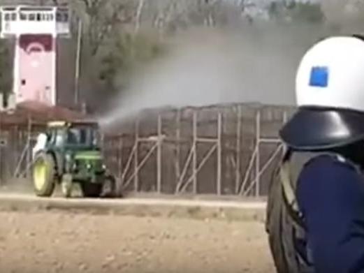 Kastanies Sınır Kapısı’na traktörüyle gelen Yunan çiftçinin, mültecilerin üzerine tarım ilacı sıktığı görüntüler ortaya çıktı. Görüntülerde Yunan polisinin insanlık dışı uygulamayı izlemesi dikkat çekti.