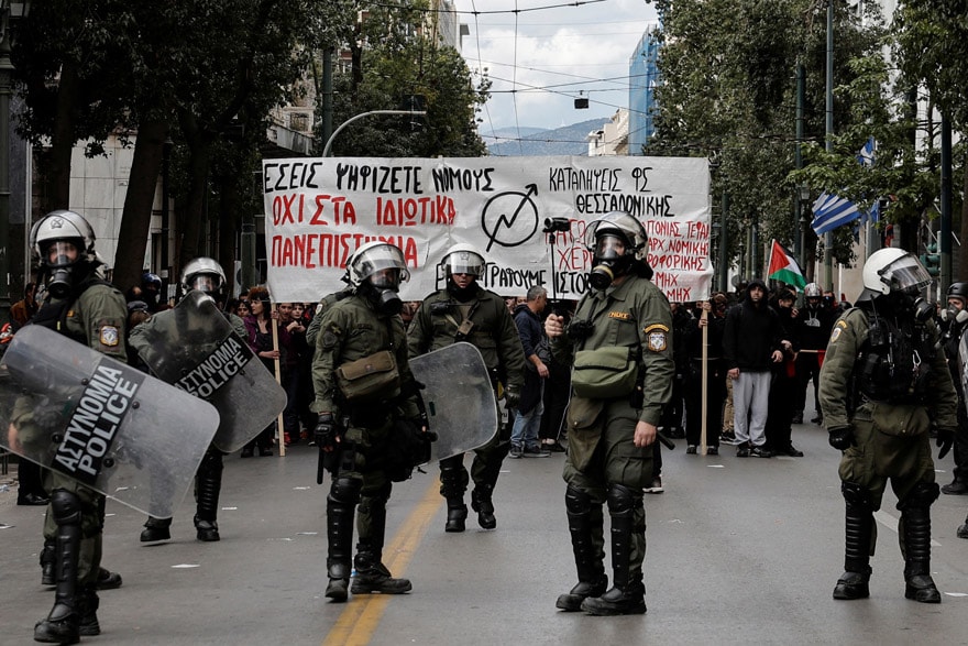 Eylemciler, polise molotofkokteyli atarken, polis biber gazı ile karşılık vermişti. Yunanistan'da bugüne kadar özel üniversite açılmasına izin verilmiyordu. "Kolej" adı altında yüksek öğretim seviyesinde hizmet veren eğitim kurumlarının diplomaları ise ülkede tanınmıyordu.