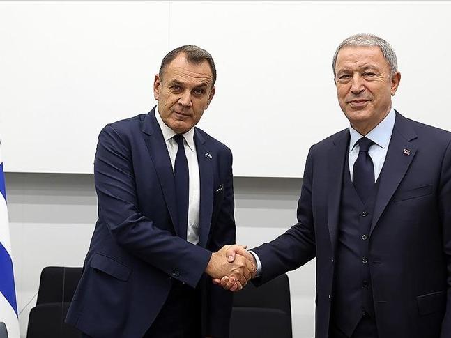 Milli Savunma Bakanı Akar ve Yunanistan Savunma Bakanı Panagiotopoulos, hafta içinde NATO Karargahı'nda bir araya gelmiş, Ege'de tansiyonun arttığı dönemde "diyalog" mesajı vermişti. (AA)