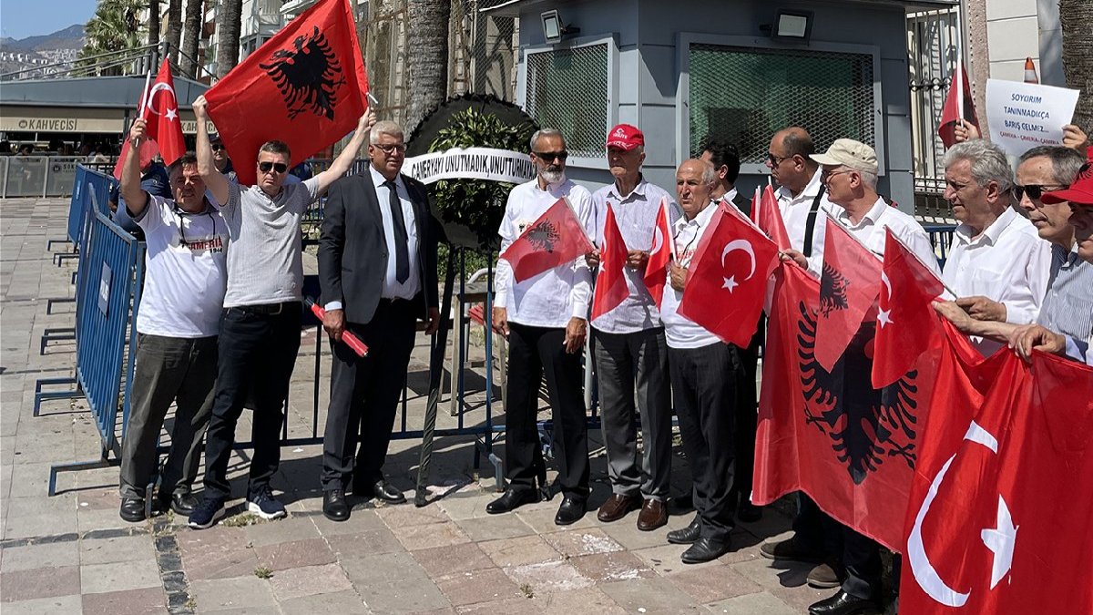 İzmir'de Alaçatı-Çeşme Arnavut Kültürü Derneği organizasyonunda Gündoğdu Meydanı'nda bir araya gelen Arnavut asıllı vatandaşlar, halk oyunu gösterisinin ardından Yunanistan Konsolosluğuna kadar yürüdü.