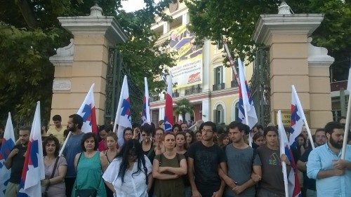 PAME öncülüğünde, AB ve IMF ile yapılan yeni anlaşmayı protesto etmek üzere düzenlenen eylemler kapsamında PAME üyeleri Selanik’teki Makedonya-Trakya Bakanlığı binasını işgal ettiği bildirildi.