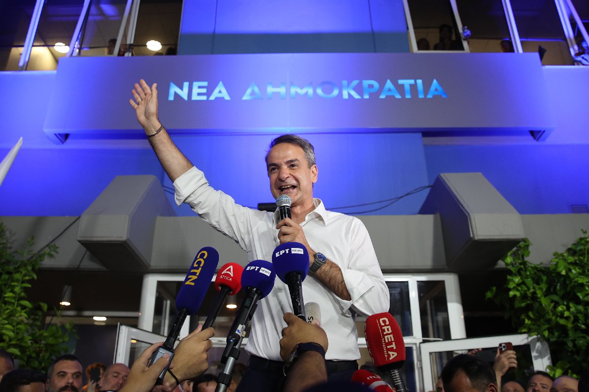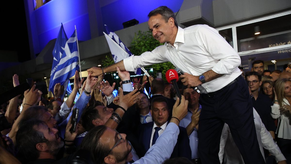 Yeni Demokrasi taraftarları seçim zaferini kutlamak üzere parti binası önünde toplandı. Kalabalığa seslenen Miçotakis, seçmenlere partisine gösterilen güven için teşekkür etti.