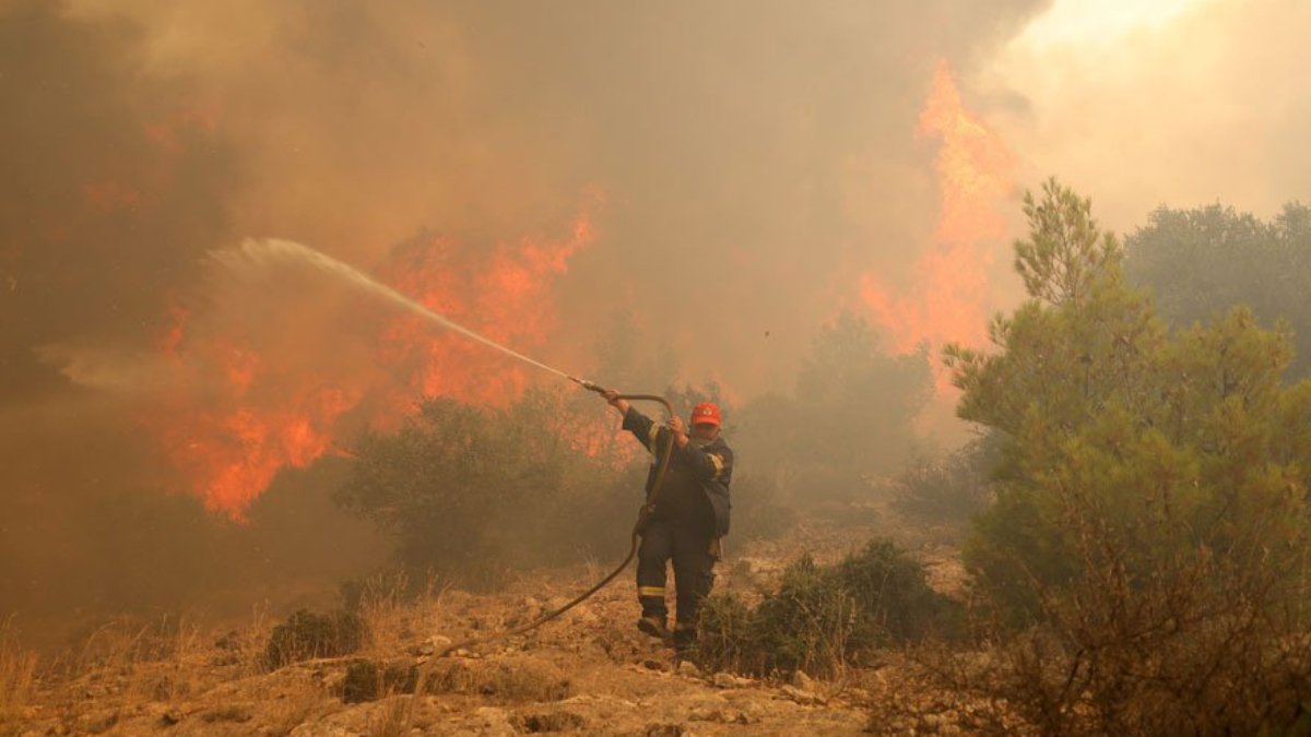 Bölgedeki yangınların söndürülmesi için Güney Kıbrıs Rum Yönetimi (GKRY), Almanya, Bulgaristan, Sırbistan, Fransa, Çekya, Romanya, Slovakya ve Arnavutluk'a bağlı ekipler Yunanistan'a destek veriyor. (AA)