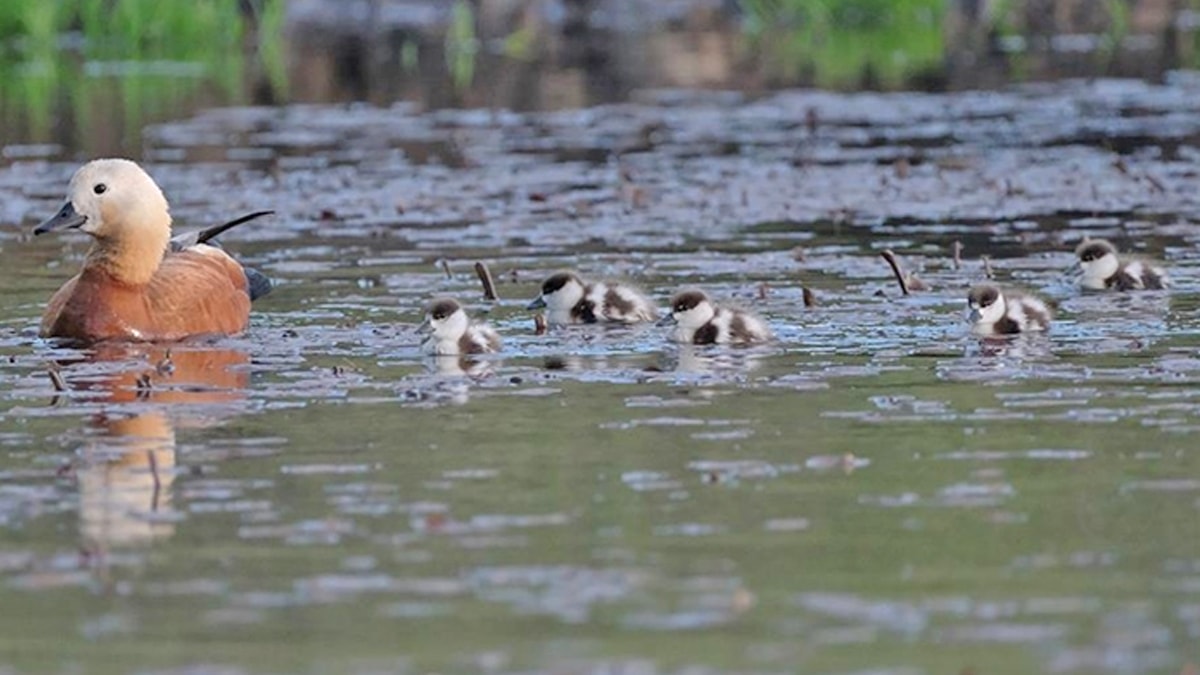 Yaklaşık bir aylık kuluçka sürecinin ardından yumurtadan çıkan, ördekgiller familyasına ait angut yavruları da anneleriyle birlikte suda yüzmeye ve yiyecek aramaya başladı.