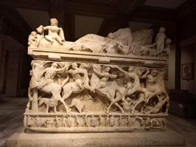 Roma Dönemi milattan sonra 250'li yıllara tarihlenen sütunlu lahit yeniden kavuştuğu özgün haliyle İstanbul Arkeoloji Müzesi'nde ziyaret edilebiliyor.