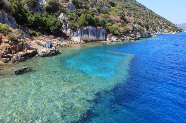 Kaş Üzerinden: Eğer Kaş’ta konaklıyorsanız, her sabah limandan kalkan günübirlik teknelerle uzun ve keyifli bir yolculuğun ardından batık şehre ulaşabilirsiniz.