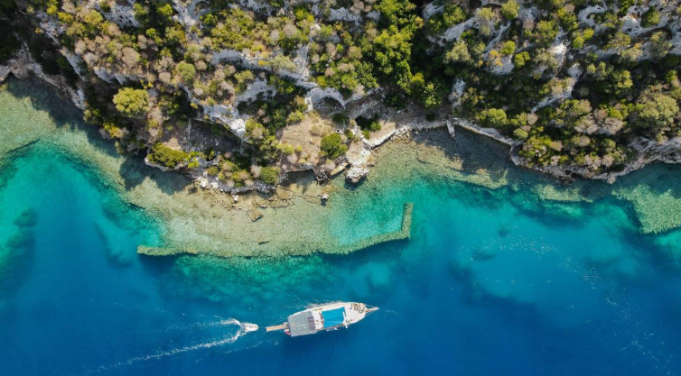 Likya Uygarlığı’nın en zarif liman kentlerinden biri olan bu bölge, asırlar önce yaşanan büyük bir doğa olayıyla sessizliğe büründü. Bugün teknelerle üzerinden geçerken görebileceğiniz ev merdivenleri, antik liman kalıntıları ve suyun içinden yükselen lahitler, bir zamanlar burada hayatın ne kadar canlı olduğunun en somut kanıtı.