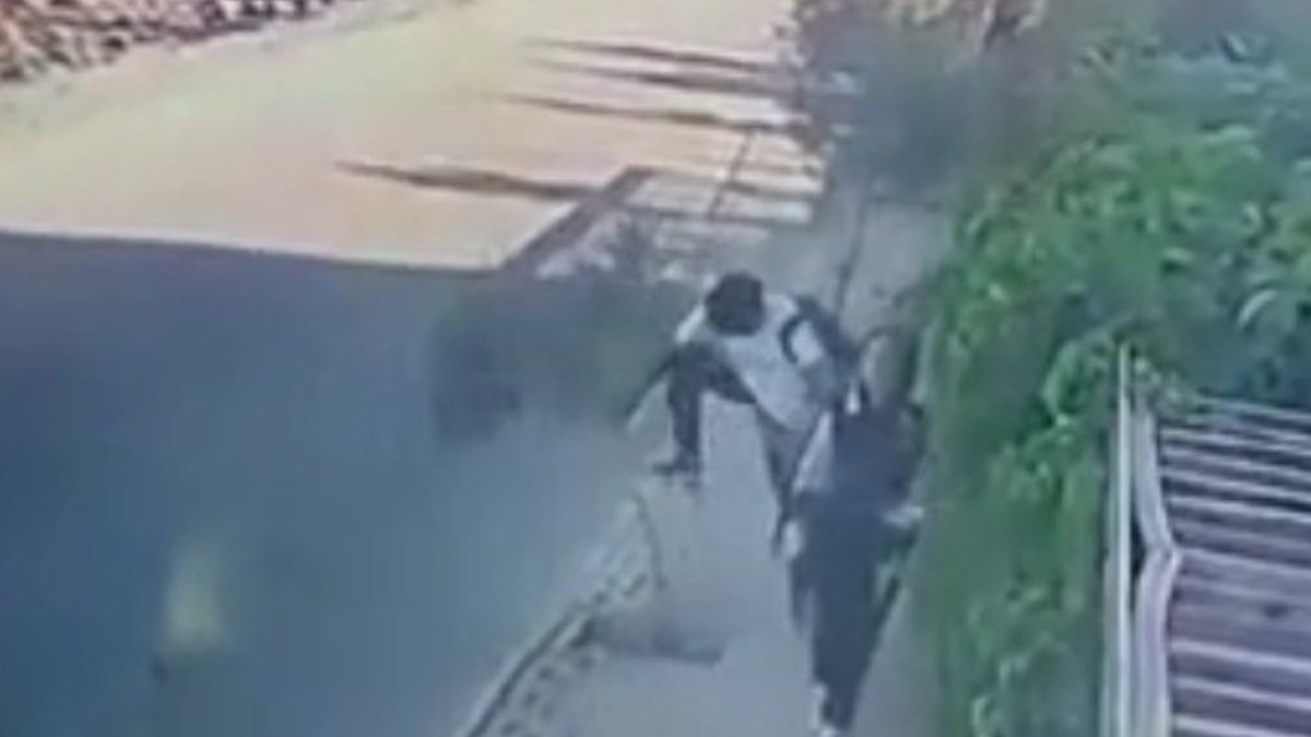 Bir lise öğrencisi, kaldırımda yürürken yüzünü çarptığı zeytin fidanının dalını kırdı. Güvenlik kameralarına yansıyan olay, tepki çekti.