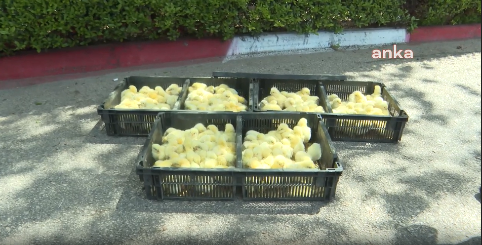 Civcivleri teslim almaya gelen kişi, zabıta ekiplerinin müdahalesi üzerine olay yerinden uzaklaşırken, hayvanlara el konuldu.