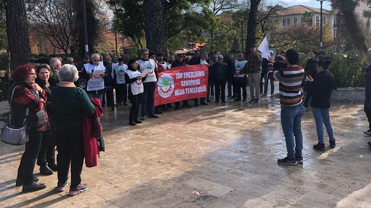 Muğla’nın Milas ilçesindeki Şehir Parkı’nda Tüm Emekliler Sendikası’nın çağrısı ile toplanan emekliler yapılan zamma tepki gösterdi, protesto etti.