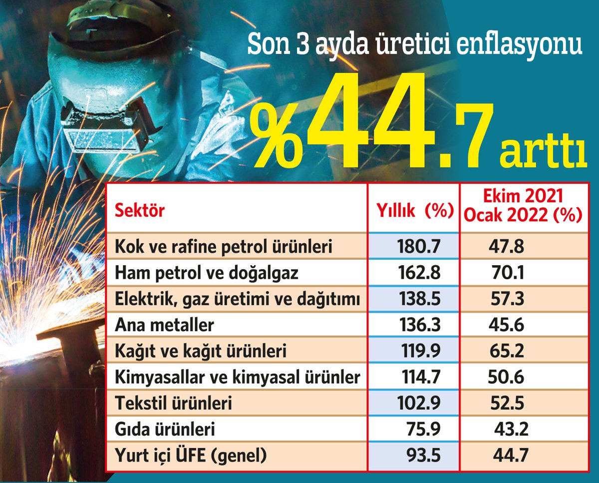 Yıllık Üretici Fiyat Endeksi’nin (ÜFE) yarısı son 3 ayda gerçekleşirken, üretimdeki maliyet yıllık Tüketici Fiyat Endeksi’ni (TÜFE) 60 günde üçe katladı.