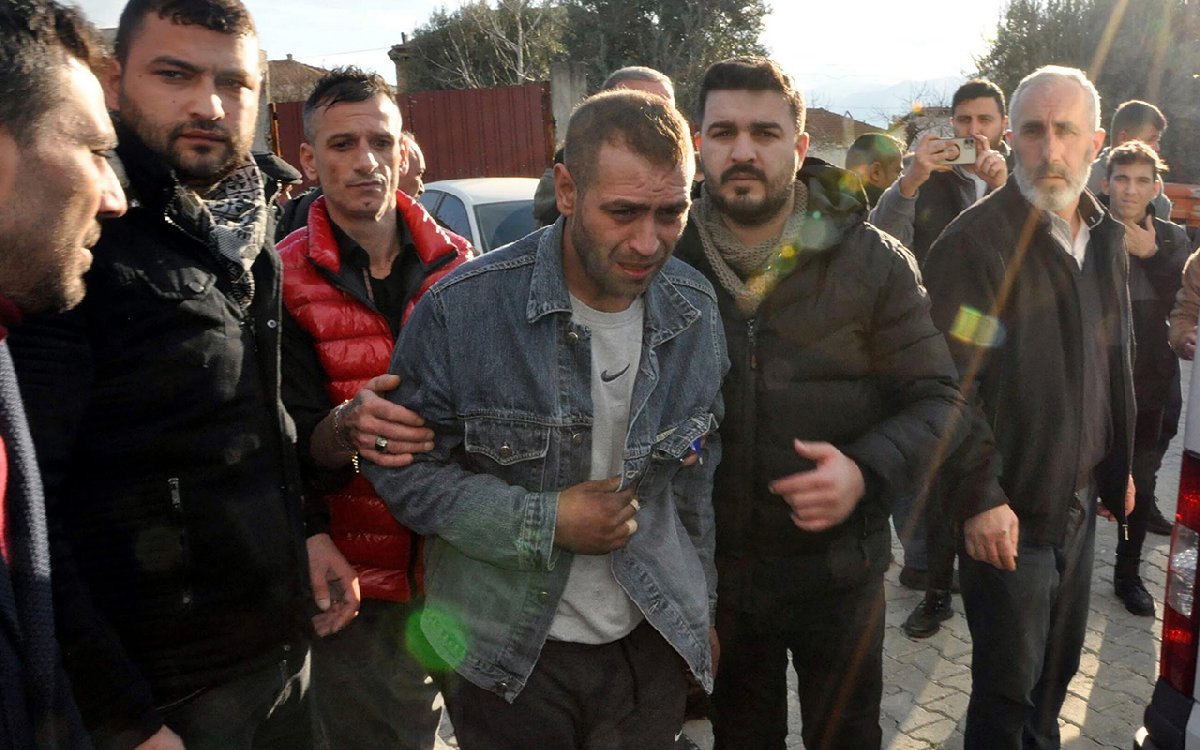 Acılı babayı yakınları teselli etti. Kılınan namazın ardından Esenköy Mahalle Mezarlığı'na götürülen cenazeler, gözyaşları içinde yan yana toprağa verildi. (DHA)