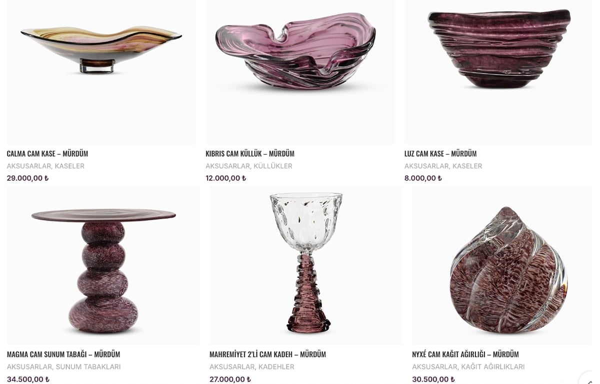 Zehra Çilingiroğlu'nun sitesinde el işçiliği ve sınırlı üretim vurgusuyla satışa sunulan ürünlerin fiyatları şöyle: