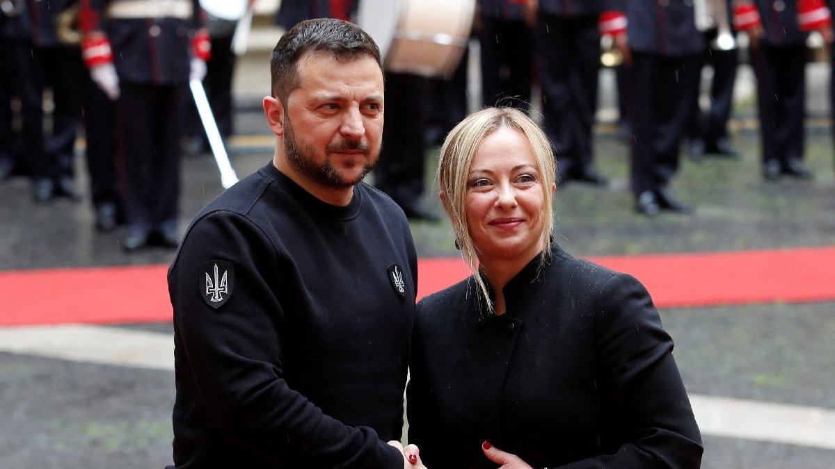 Zelenskiy, daha sonra başbakanlık sarayı Chigi'ye geçerek burada İtalya Başbakanı Giorgia Meloni ile bir araya geldi. Başbakan Meloni, Zelenskiy'yi başbakanlığın avlusunda resmi törenle karşıladı. Meloni, karşılama sırasında İtalya'nın Ukrayna'nın toprak bütünlüğü ve egemenliği ile bağımsızlığına yönelik 360 derecelik tam desteğini teyit etti.