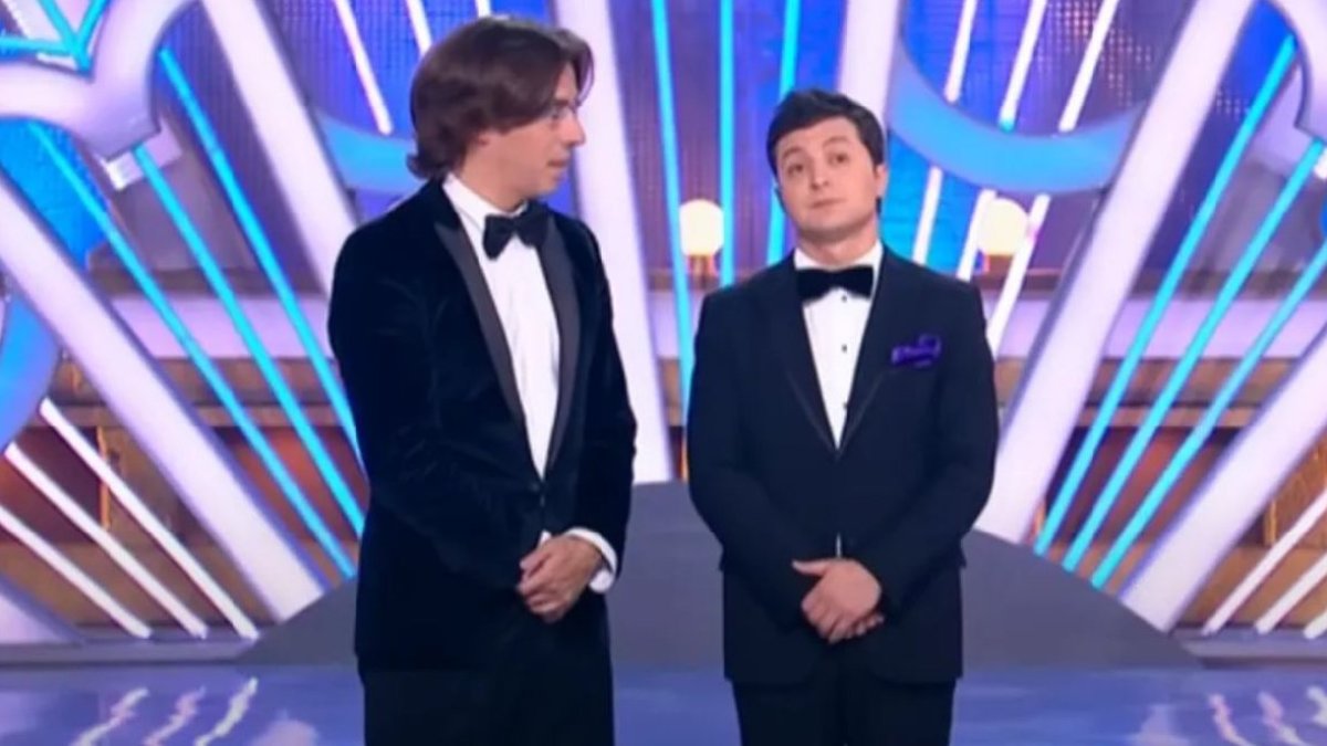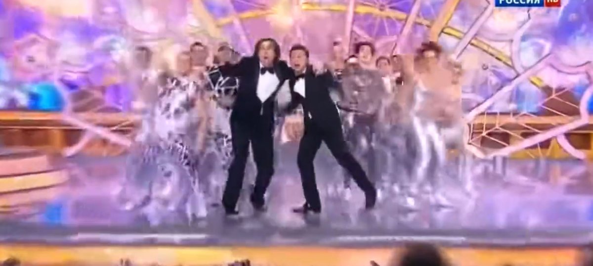 Zelenskiy'nin dans ve şarkı şovuyla Rus seyircileri eğlendirdiği görülüyor.