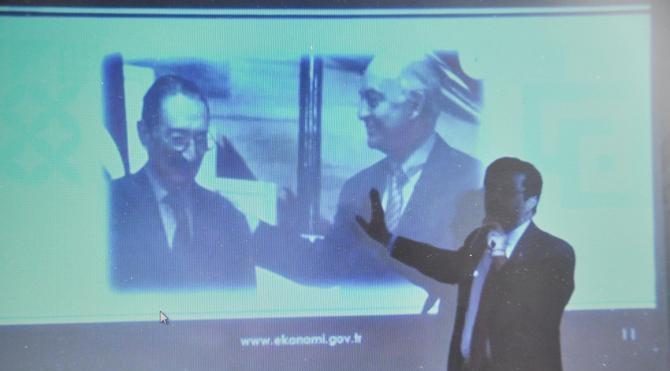 Bakan Zeybekci, konuşması sırasında sinevizyona yansıtılan eski Başbakan Bülent Ecevit ile eski Bakan Kemal Derviş'in ını göstererek, 'Bu resme bakın, Kemal Derviş ve Başbakan Ecevit. Bu taraftaki Nihat Zeybekci olsun bu da Cumhurbaşkanı Erdoğan olsun. Şu yüz ifadesiyle, ben de elimi Erdoğan'ın omzuna böyle koymuş olsam sonuçlarını düşünebiliyor musunuz Size ne kadar muhtaç hale geldiğimi, sargılarla ne hallere geldiğimi düşünebiliyor musunuz. Onurlu bir ülkeye, bağımsız bir ülkeye, devlete yapılacak en büyük hakaret, onur kırıcı hakaret, o ülkeye dışarıdan bakan atamaktır' dedi.