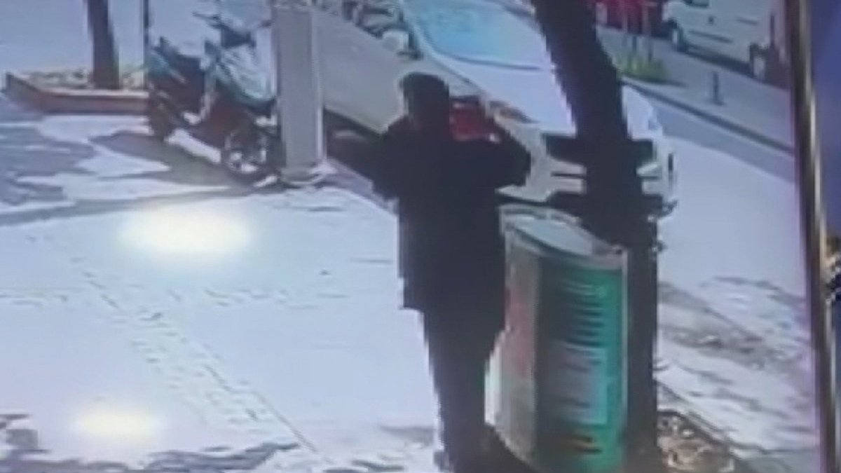 Caddeden geçen bir kişi içinde yaklaşık 2 bin lira olan kutuyu çalıp, olay yerinden kaçtı. Hırsızlık anları işyerinin güvenlik kamerasına yansıdı.