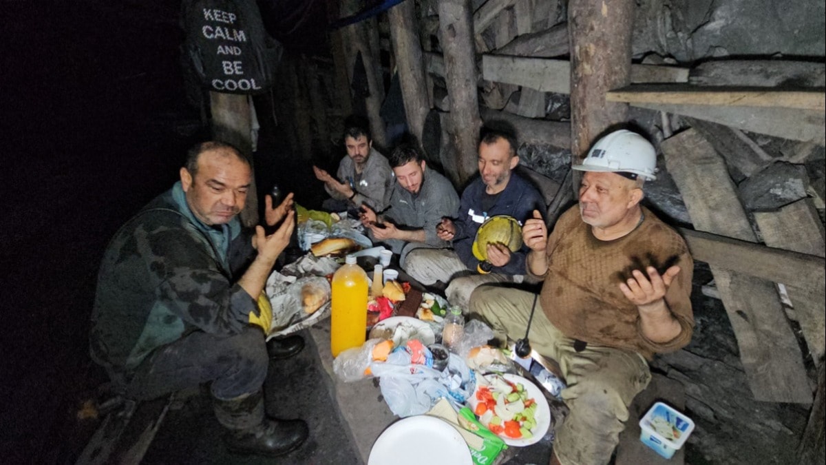 16 yıllık maden işçisi Turan Açıkgöz (51), kurdukları sahur sofrasında ısıtamadıkları için sulu ve sıcak yiyecek bulunmadığını belirtirken, “Madende bütün arkadaşlar ellerinde ne varsa getirirler ortaya koyarız, kardeş gibi herkes oturur, yeriz. Ramazan ayının tüm İslam alemine, tabii ki Zonguldaklı madencilere hayırlara vesile olmasını diliyorum. Kazasız, belasız çalışmayı nasip etsin, Cenab-ı Allah. Soframızda, aperatif şeyler var. Isıtma sorunu olduğu için sulu yemeğimiz yok. Domatesimiz, soğanımız var. Dolma, zeytin, peynir, kek. Ramazanın bereketi köfte var. Poğaça getirmiş arkadaşlar. Zaten yerin altında çalıştığın zaman arkadaşlarınla beraber oturup o ortamı yaşıyorsun ya, önemli olan o. Burada kazasız belasız, akraba gibiyiz hepimiz. Değişik ilçelerden gelmiş arkadaşlar, kardeş kardeş çalışıyoruz.” dedi.
