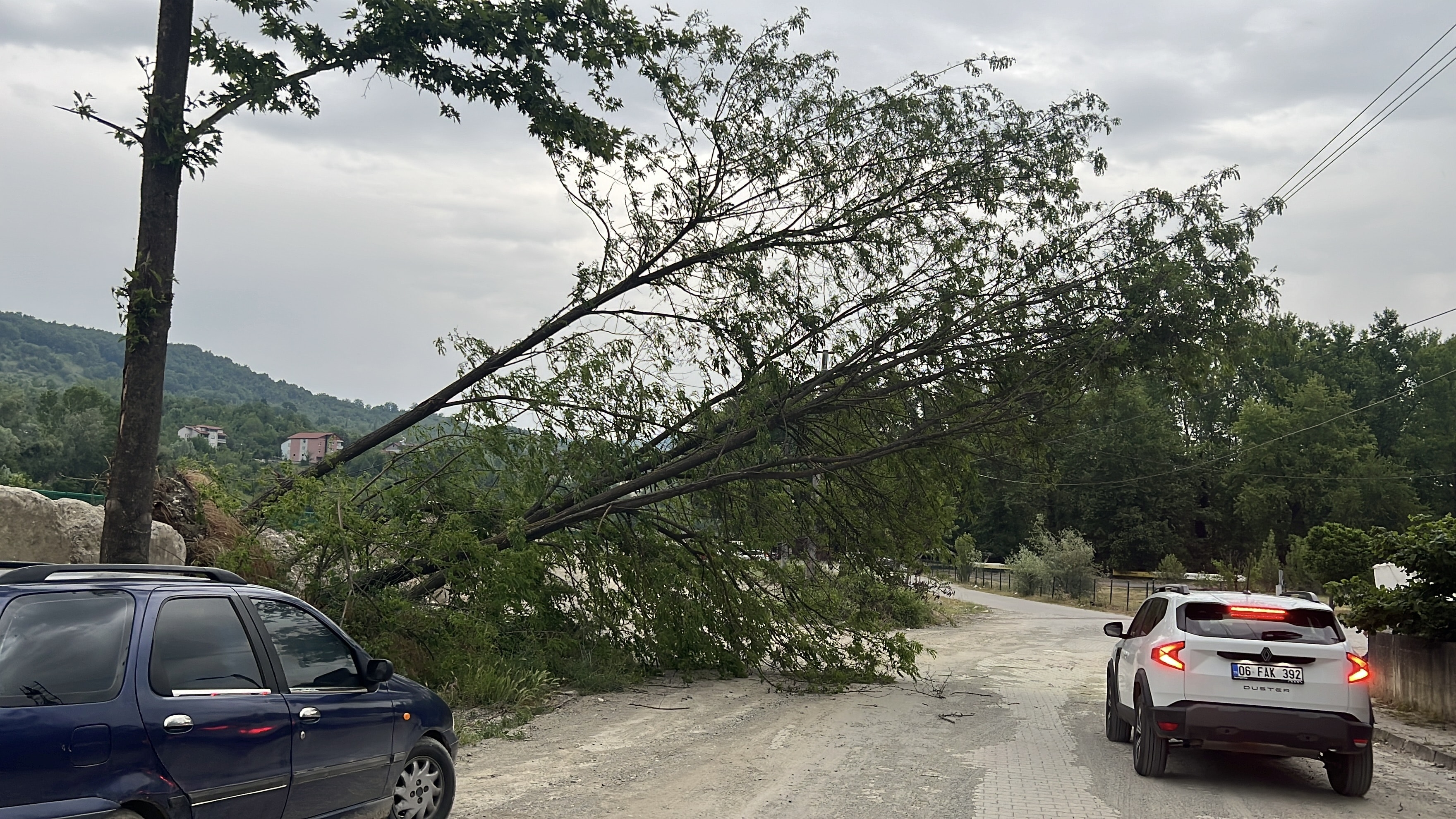 Ağaçların devrildiğini görenlerin ilgili birimlere ihbarda bulunması üzerine ağaçların çevresine güvenlik şeridi çekildi.