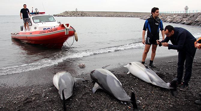 Yunusların strese bağlı intihar eğilimleri olduğunu söyleyen görevliler, balıkların su içinden çıkmayarak oksijensiz kalmaları sonucu ölmüş olabileceklerini söyledi. Yapılan incelemeden sonra yunuslar belediye tarafından sahilden kaldırıldı.
