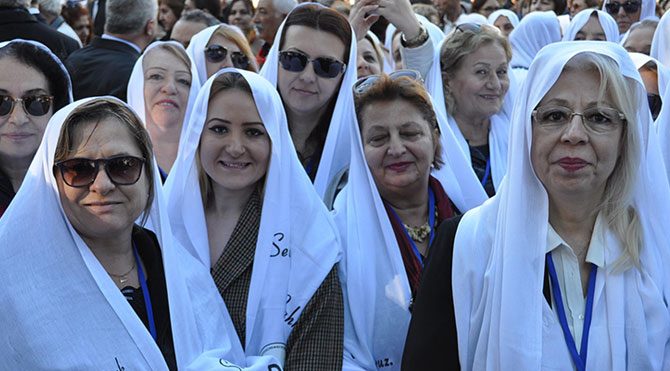 İzmir Büyükşehir Belediye Başkanı Aziz Kocaoğlu`nun eşi Türkegül Kocaoğlu da, `Bir ülkenin zor günlerinde, sevgili oğlu ile nasıl dik durulur, umutsuz olunmaz, bize ve Türk ulusuna gösterdiler. Türk ulusunun aziz anası 93 yıldır güzel İzmir`imizin bağrında yatıyor. İçinde bulunduğumuz coğrafyada çok zorlu günlerden geçiyoruz. Gazi Mustafa Kemal Atatürk`ün savaş karşıtı muhteşem öğüdü nasıl mümkün olur, biz tüm analar bunu canı gönülden diliyoruz. Elimizden geleni yapmaya hazırız. Ah bir barış olsa, gencecik canlar, çocuklar yitip gitmese` diye konuştu.