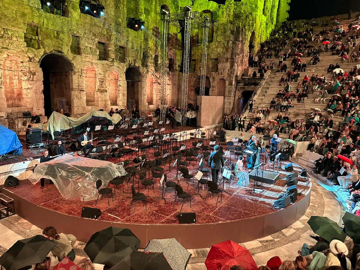 Konserin bir bölümünde, orkestra üyelerinin yağmur nedeniyle sahneyi terk etmek zorunda kalmasının ardından, Livaneli ve Farantouri ve diğer sanatçılar, bağlama sanatçısı Erdem Şimşek eşliğinde konseri sürdürdü.